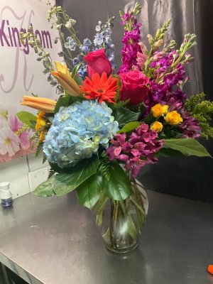 This is the second time I have ordered from Flower Kingdom for my friend who now lives in WPB. She loved the birthday flowers and vase they came in! She also mentioned the fragrance was amazing. Will probably become my go to place for her future gifts/events.