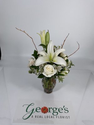 I'm very grateful I picked George's. I really appreciate the service I received from the delivery, the arrangement and the person who took my order on the phone. Thank you so much for accepting my order on such a short notice. I will definitely be using George's in the future. Excellent service. Thank you
