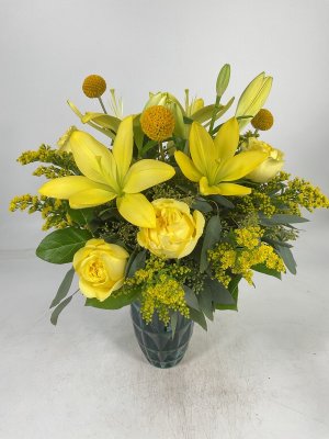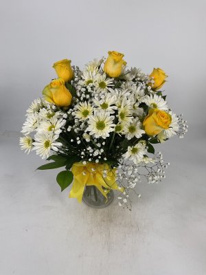 Beautiful as always! This combination of Daisies & pastel yellow Roses is sooo cheerful and I've received so much feedback from recipients about the arrangement being so much more elegant & cheerful than the picture. And my friend in the hospital was transferred to Raleigh Court for rehabilitation work and asked for another Daisies & Yellow Roses arrangement for their new room.