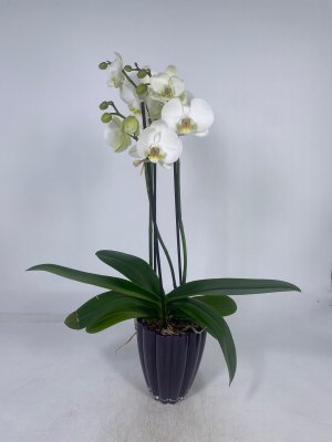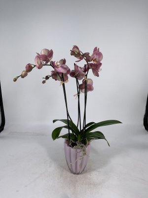 This orchid is truly beautiful and so well matched with a beautiful container. My friend loved it.