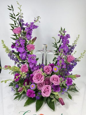 Absolutely gorgeous!! Perfectly arranged for the occasion, too. Love the keepsake ✝️ cross.