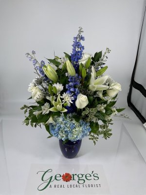 Laura, thank you for speaking with us. We're so happy you were pleased with the final arrangement. Thank you for trusting George's Flowers!