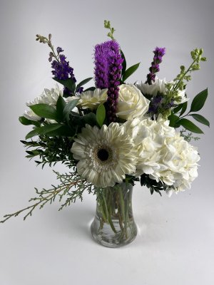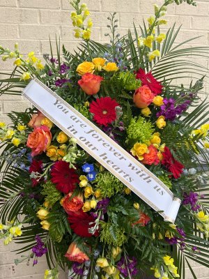 We were very surprise at the beautiful arrangement. I always use Karin's for flowers, and appreciate good service. The cost is something that surprised us. I know things are more expensive today, but we were still happy to see how beautiful it was. Thank you! Judy