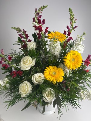"Fantastic job! Only direction I gave was to please make the arrangement colorful and to use your freshest flowers so it will last and their creation was beautiful!!"