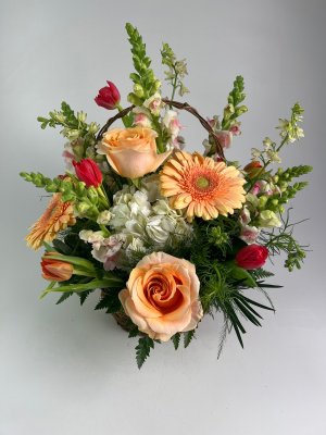 Horrible , all single different randomly arranged flowers?! No artistic arrangement. Flowers don't go well together. I asked for NO LILLIES! This is too much greenery. I requested all white and maybe a pale blue hydrangea. I hate purple. A tiny tulip with a huge Lilly?! Ugly and $175!!!! I have used Karin's for years, is this new management? So disappointed.😔