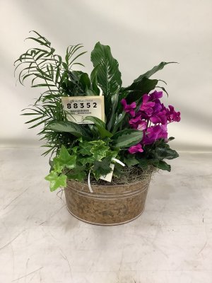 This is not as full as the picture and I guess when the flower bloom it will have some color like the picture we liked the darker pot.