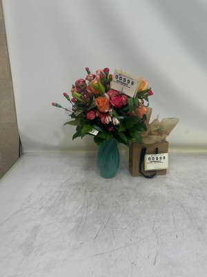 These flowers were beyond gorgeous!! The vase is lovely and unique. The arrangement was beautiful. Highly recommend!