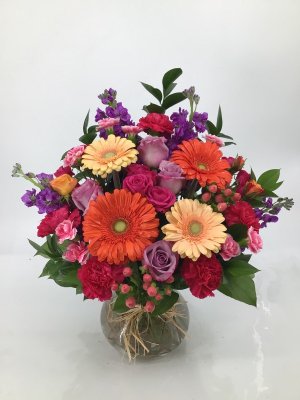 The flowers were beautifully arranged, very unique, and delivered as requested. We are very satisfied.