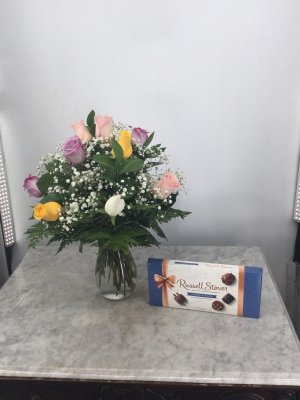 The flowers were very pretty. The arrangement was not as full as I would have preferred. The flowers included all the colors I asked for and it was nice.