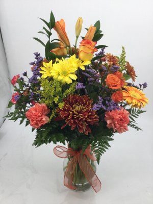 This arrangement is stunning! I couldn't be more pleased. As always Moravian Florist did a stellar job. Thank you once again for a job well done and a piece beyond my expectations. And thanks for the photo too!