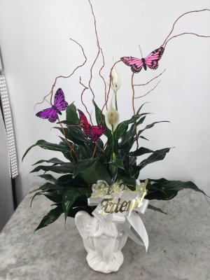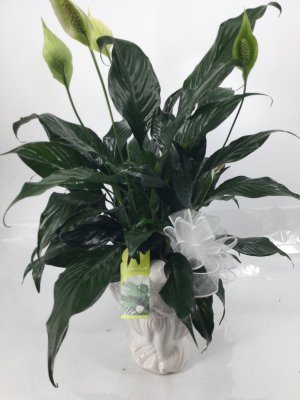 Thank you so much for working with me on the phone to make this process as easy as possible. The Peace Lily arrangement is beautiful and will be appreciated by our family. Always the best products and service from Moravian. Thank you again.