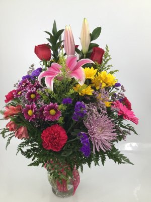 This arrangement is stunning! I couldn't be more pleased. As always Moravian Florist did a stellar job. Thank you once again for a job well done and a piece beyond my expectations. And thanks for the photo too!