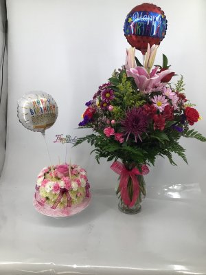 Thank you for this beautiful floral arrangement! It brightened up our 97 years old aunt for her birthday. I also greatly appreciate the photo of the flowers.