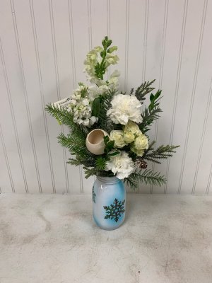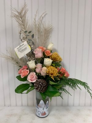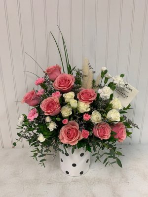 Thank you for sending a photo of the floral arrangement we ordered for a dear friend whose mother passed. Not only is this arrangement absolutely beautiful, it was easy to order online and this arrangement looks even more beautiful than the advertisement! Thank you!