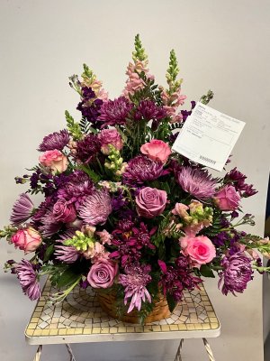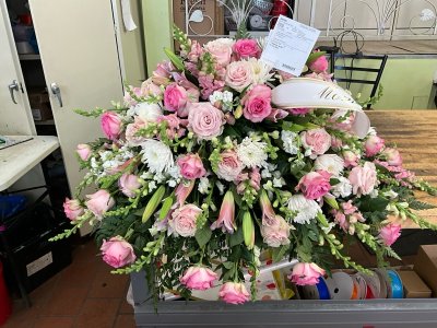 I enjoyed getting the photo. The flowers pictured are beautiful, however, the hydrangeas in both arrangements were already dying by the time I arrived at 10AM. I was so disappointed and a little embarrassed. The spray was placed right next to the photo of the deceased.