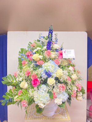Flowers were very pretty. My son really liked them. The photo you sent really helped since I did not get to see them in person. It was made and delivered in just a couple hours. I was really surprised. Thank you for an exceptional job!!