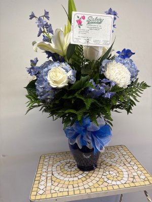 Last minute request from out of state. Service was outstanding and the floral arrangement is beautiful. Thank you so much‼️😎👍